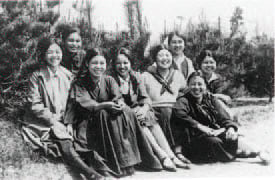 写真左から二人目山代巴、四人目は矢野綾子(堀辰雄の『風立ちぬ』のモデル)