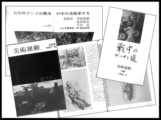 65年前の「美術運動」誌(1951年再刊4号)「平和と美術」座談会では佐藤忠良、鶴岡政男、永井潔、吉沢忠(批評家)らが参加し、鶴岡「今後われわれはどういう風にするか、政治的意識も必要だが、仕事の上でやっていかなければならないと思う。しかし、仕事の上でやっていて果たして平和を守れるだろうか、どうか。我々より大きな世界的な力に対して守っていけるかどうか」。吉沢「しかし作品の上で平和を守ることが出来ないくらいなら、それ以外ではよりいっそう守ることが出来ないのではないでしょうか」(中略)佐藤「りんごを描いても平和を守ったといってもよかったかもしれないが、今はそれではダメだ。平和を戦いとるという考えが絶対に必要だ」。全員「なかなか難しい問題だ」。吉沢「この座談会で皆さんが真剣に平和を考えていらっしゃることは、他の若い美術家に大きな影響を与えると思いますが、それはここにいる方の画を尊敬するからで、作品で守るということはそういう行動に裏づけされた作品ということではないでしょうか」。永井「そう。結晶点が作品であるということで、作家の全行動の結果が作品に結晶することが必要でしょう。画家でなければ守れないまもり方でなければダメだというわけです」とある。美術家としての運動や創作のあり方を自問自答し続けた70年でもあった。