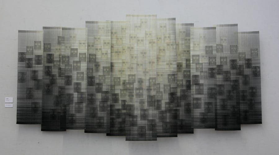 生駒山の麓を少し上がったところに小さな古刹がある。境内は木々が繁るままに伸びていて心地よい。寺川真弓さんは境内に接した東向きの一軒屋に三年前越して来た。作業場を整え織機を据え、桑畑を作った。奈良盆地を下方に眺めながら新たに「織で表現する人」としての生き方を自覚し思索を続けてこられたのだろう。